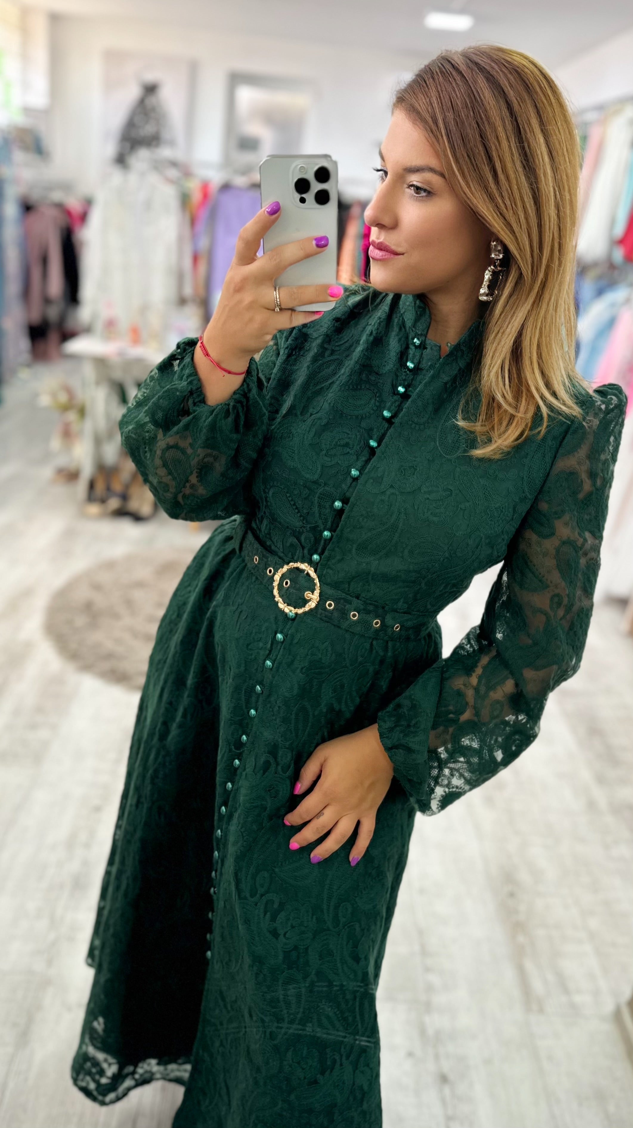 Csipke elegancia, midi ruha részlet gazdag kidolgozással, igényes kivitelezéssel és igazán kedveld színnel kombinálva. Hogyha valami nem mindennapit keresel a hétköznapokra, vagy akár egy őszi rendezvényre/esküvőre Eugénia ruha lesz a számodra legmegfelelőbb darab!