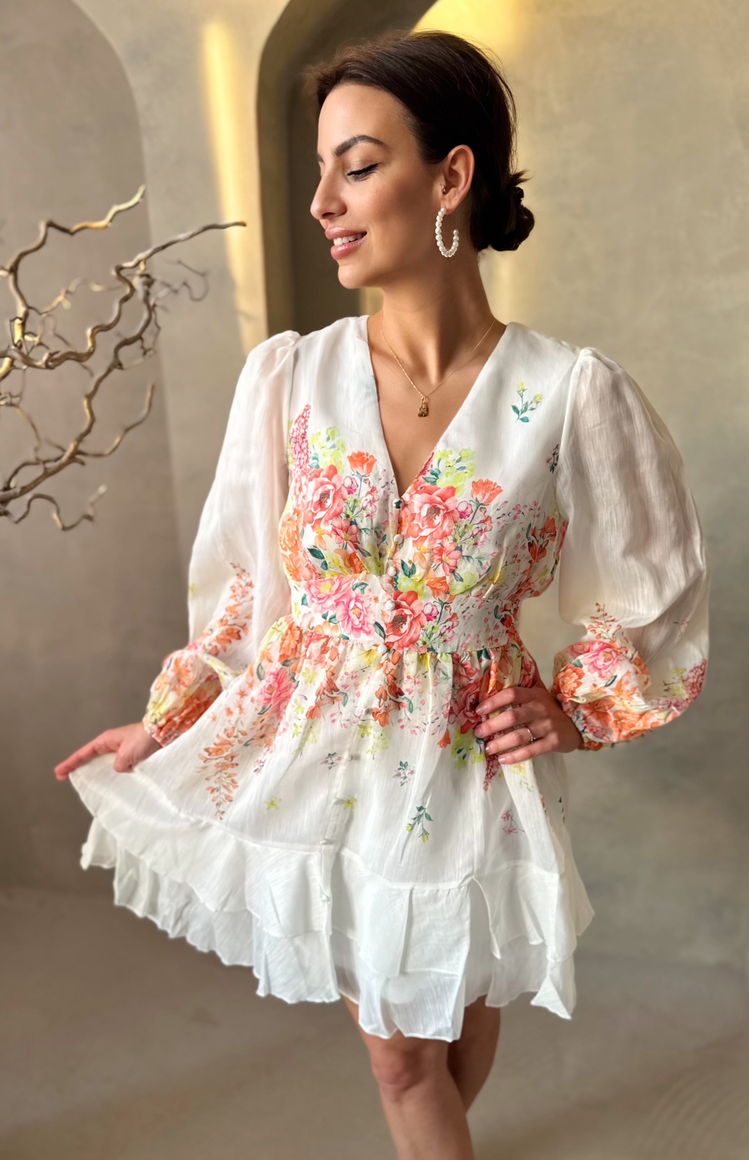 Veronika ruhánk igazán különleges és egyedi darab, fazonját tekintve egyszerre légies és nőies darab, ami igazán kellemes viselet, de ami igazán különlegesség varázsolja az egyedi mintázata és kellemes lenge fazonja. Nem mindennapi darab amit a hétköznapokon illetve egy különleges alkalomra is egyaránt választhatsz.
