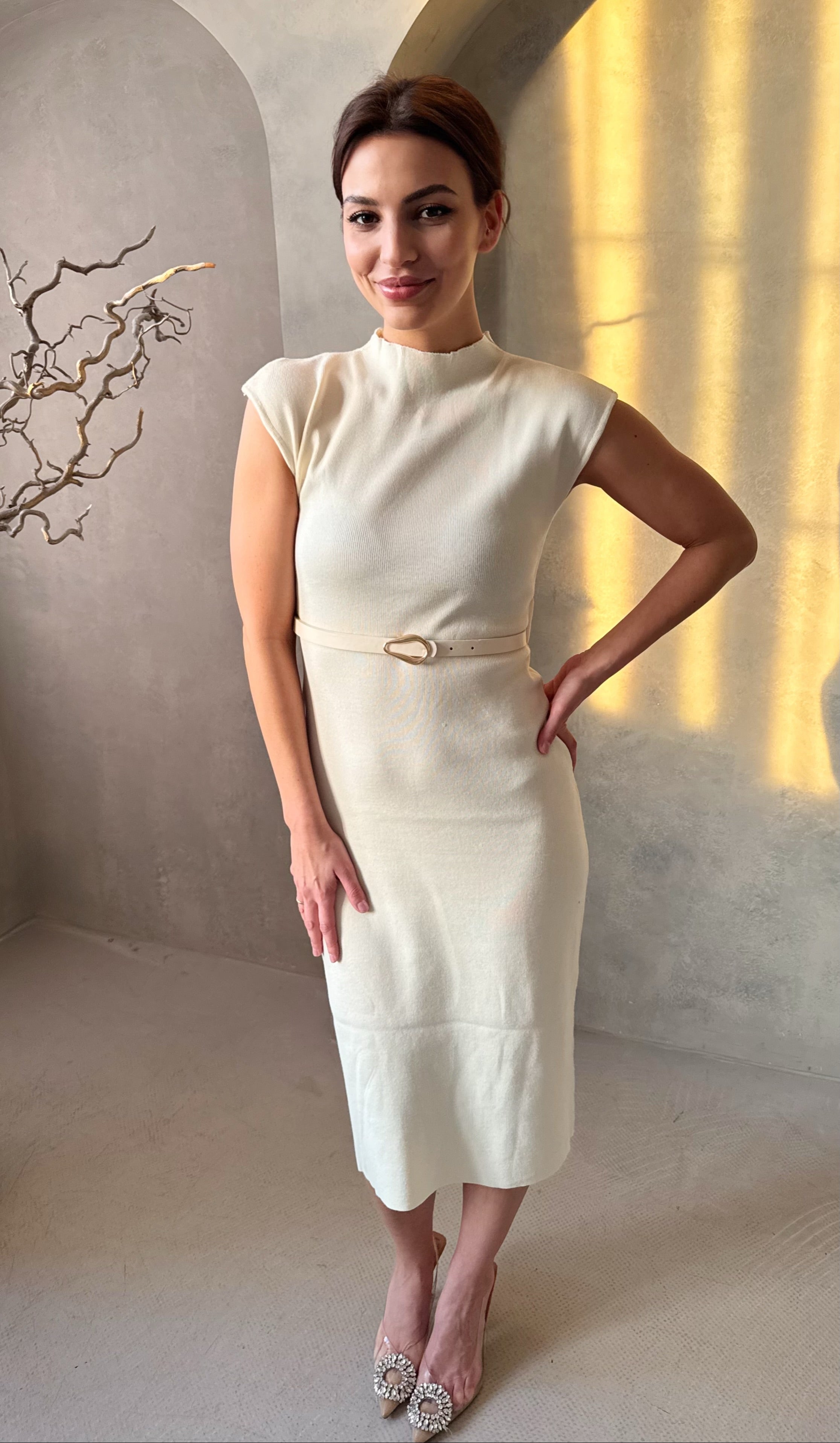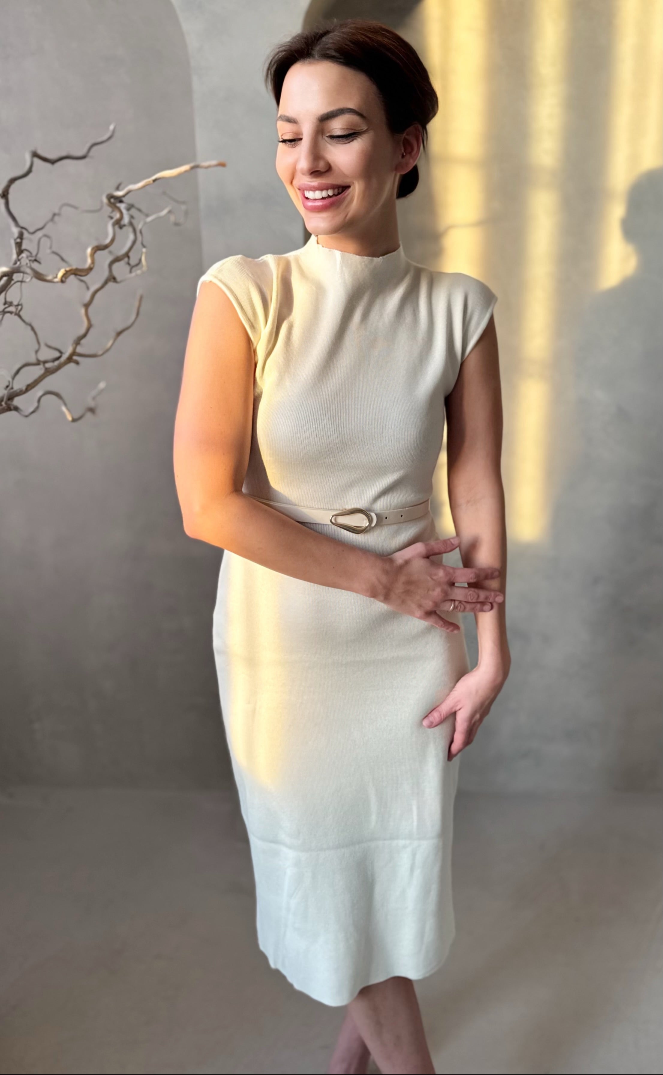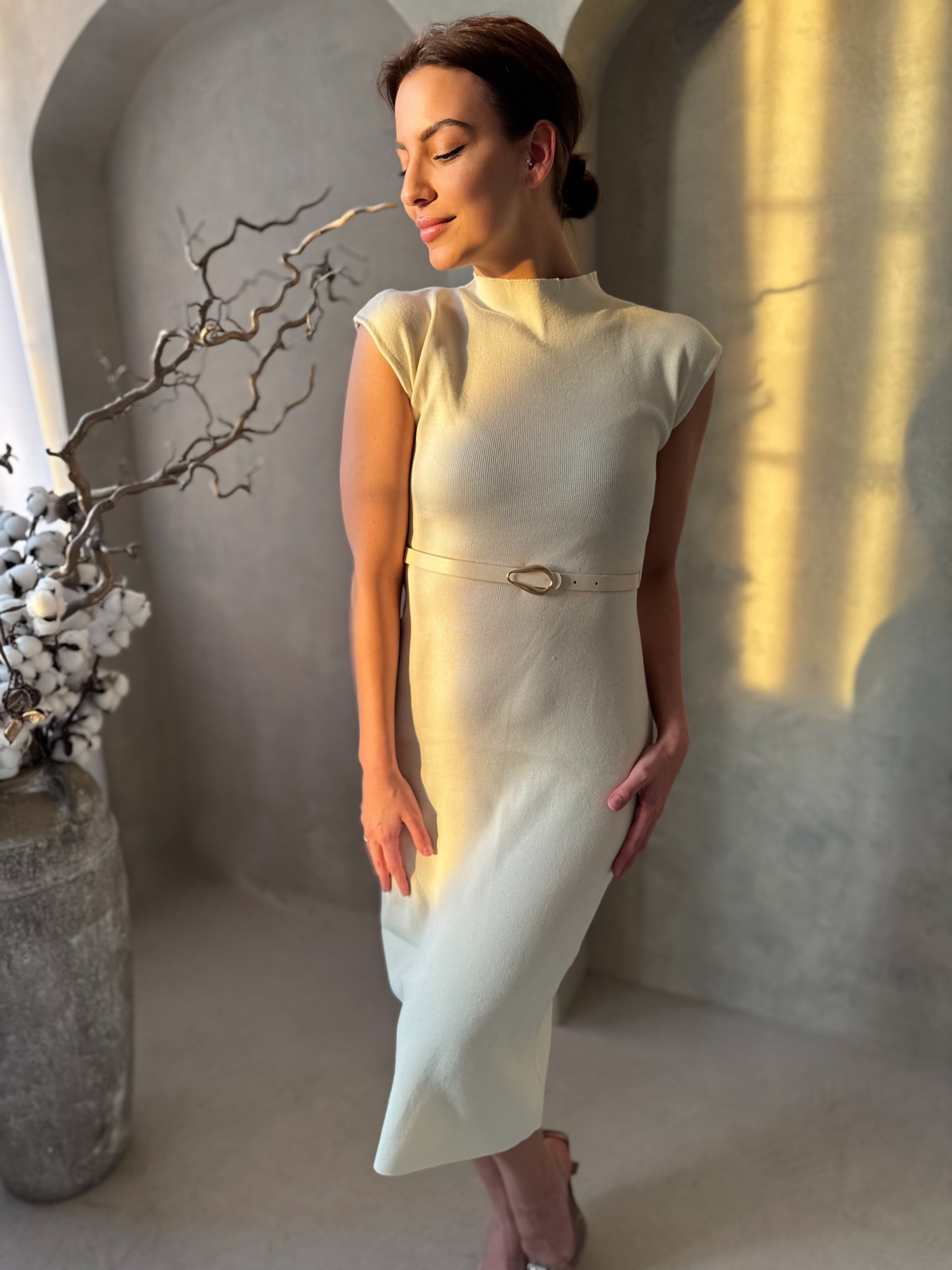 Az imádott pamut ruha egy kényelmes és elegáns ruhadarab, amely kiválóan alkalmazkodik viselője testéhez. Ezt a pamut ruhát bézs színben ajánljuk, és a bordázott pamut anyagának köszönhetően rendkívül rugalmas. A fazon a derekán lévő öv és az anyagában bordázott minta egyedi stílust kölcsönöznek viselőjének.