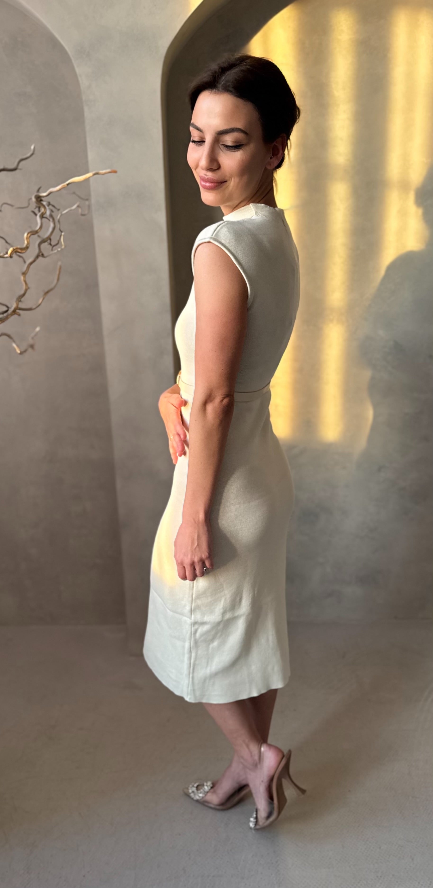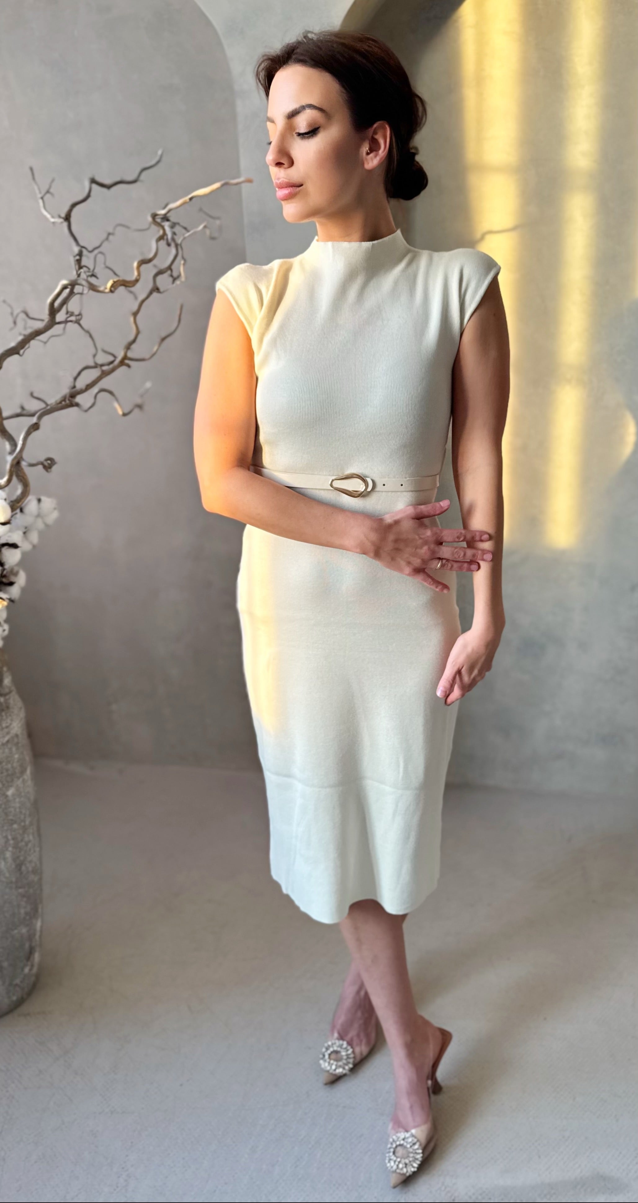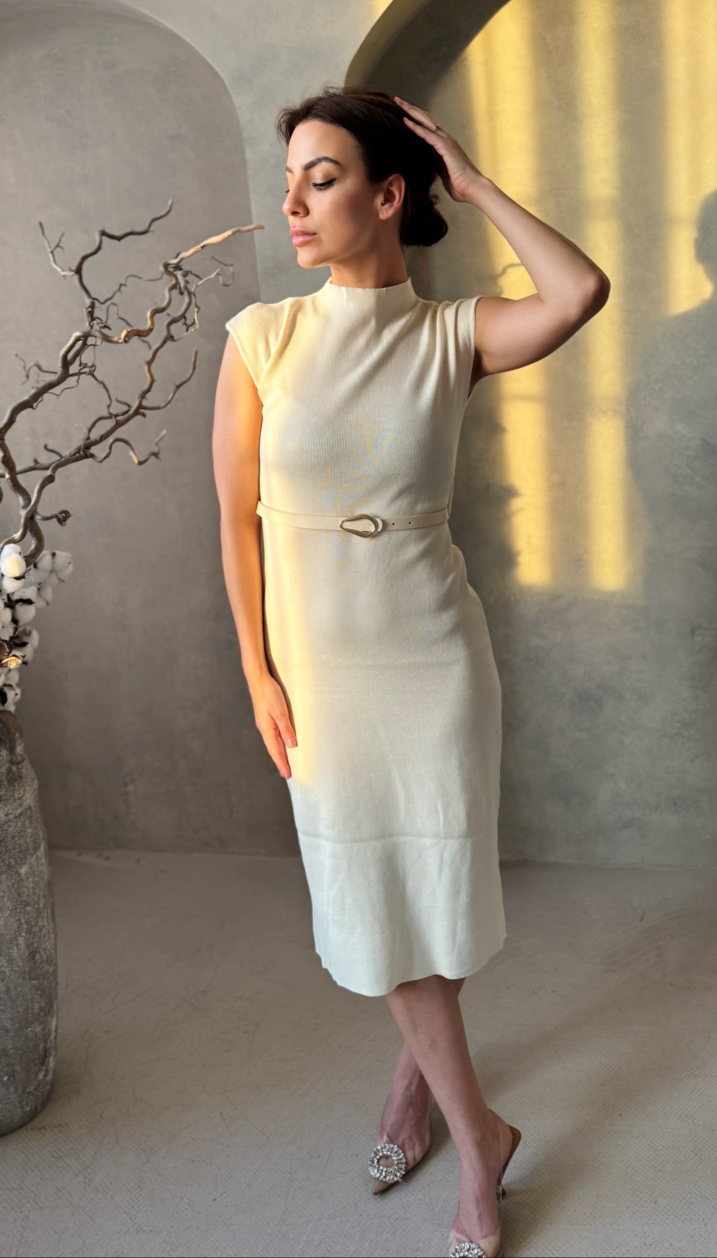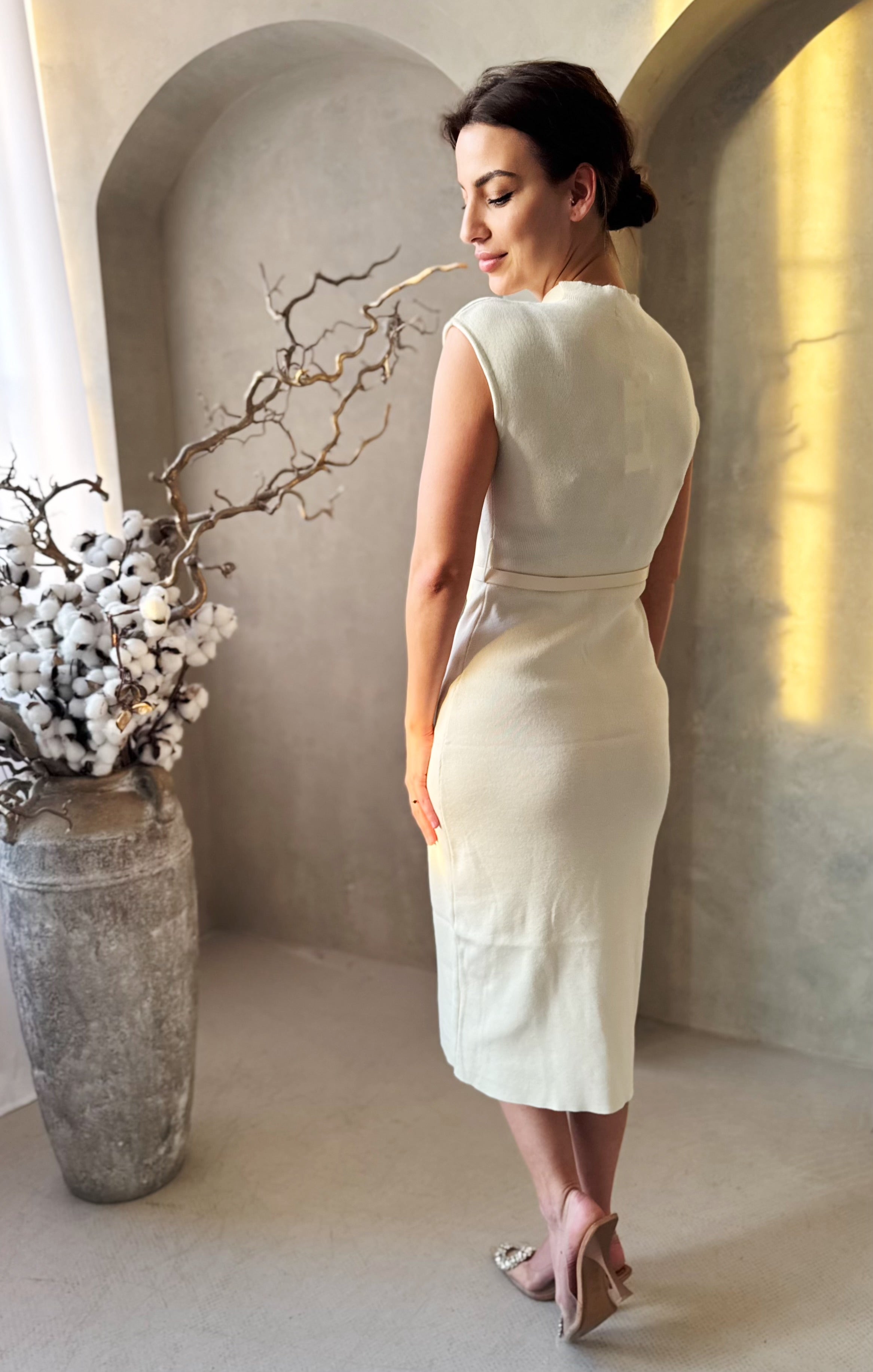 Az imádott pamut ruha egy kényelmes és elegáns ruhadarab, amely kiválóan alkalmazkodik viselője testéhez. Ezt a pamut ruhát bézs színben ajánljuk, és a bordázott pamut anyagának köszönhetően rendkívül rugalmas. A fazon a derekán lévő öv és az anyagában bordázott minta egyedi stílust kölcsönöznek viselőjének.
