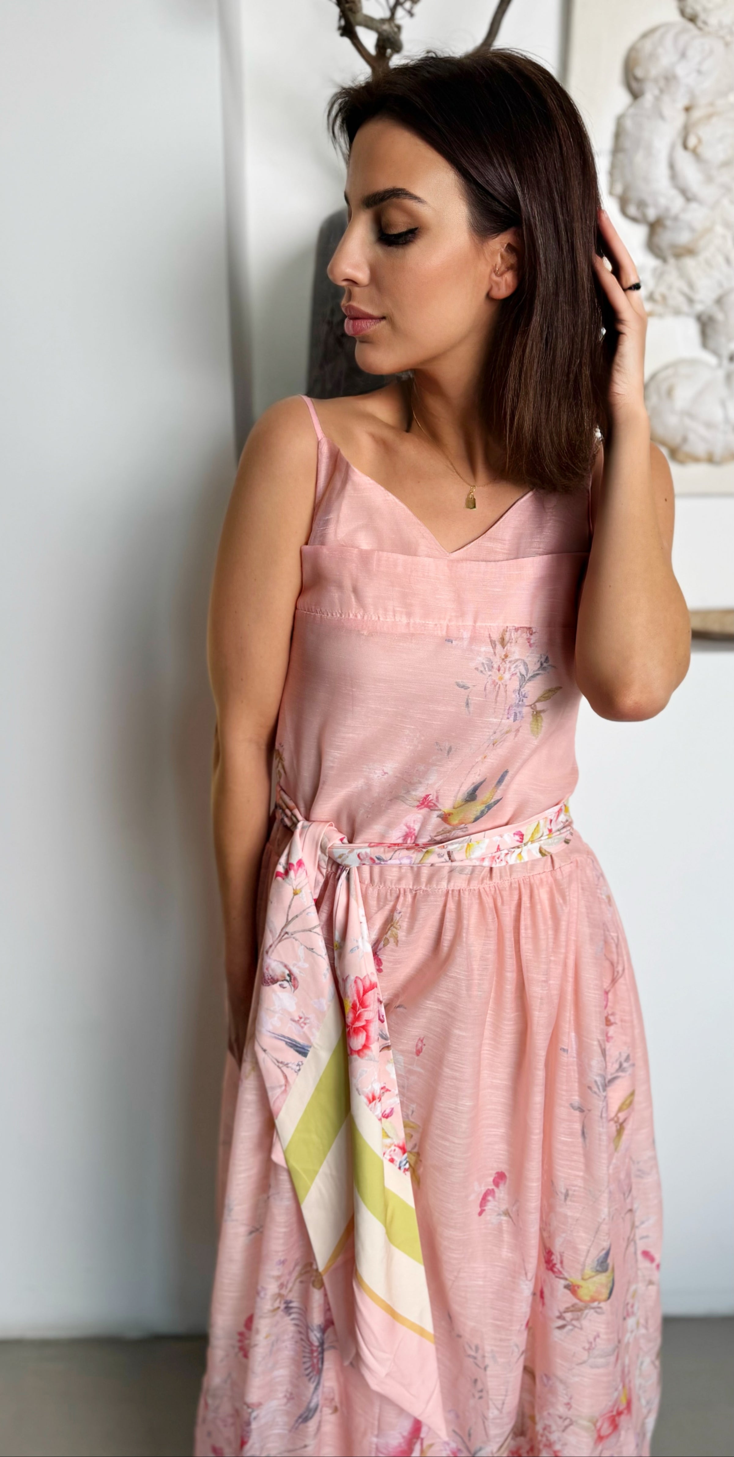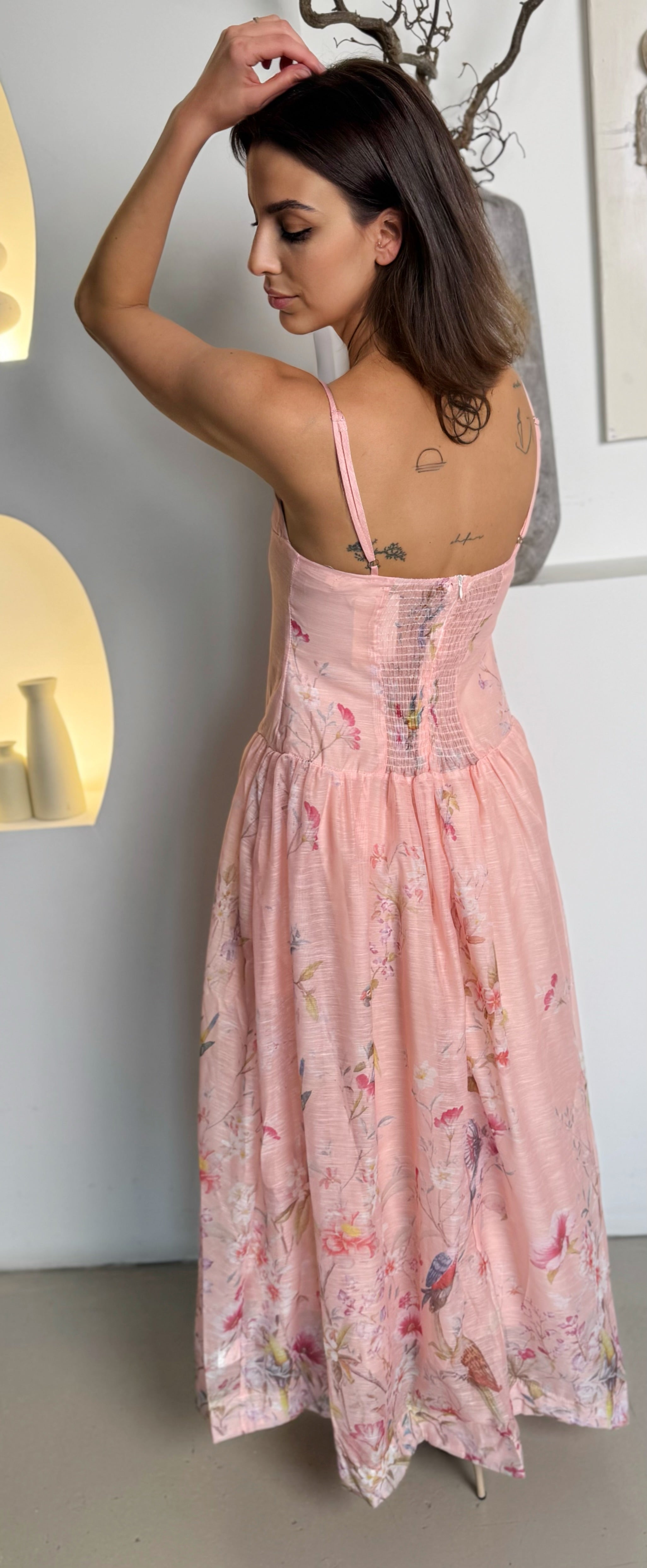 Ezt a midi ruhát még egy Gésa is megirigyelné gyönyörű mintázata és lenn hatású anyaga miatt. Különleges fazonú nyári ruha alkalmakra, vagy akár a nyaralásra is tökéletes választás. Gumis hátmegoldásának köszönhetőem kényelmes mégis elegáns megjelenést sugároz viselőjének.